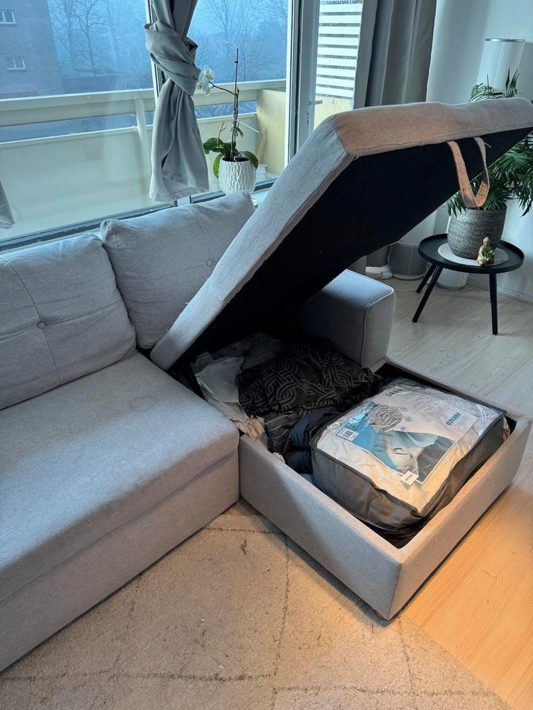 Comfortabele 3-zits hoekbank. Gebruikt, maar in goede staat. Ideaal voor een gezellige zithoek. Biedt voldoende ruimte voor het hele gezin. Met opbergruimte. Gratis af halen vandaag!