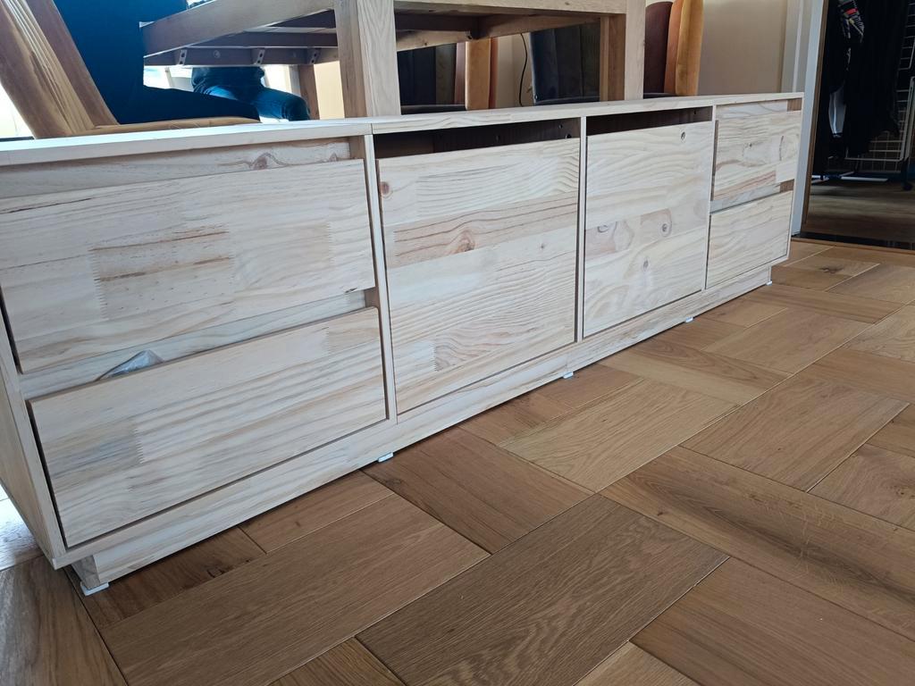 Gratis ophalen! Tv meubel van massief grenenhout. Nauwelijks gebruikt omdat wij de kwaliteit niet goed vinden. In november gekocht bij vida xl voor €165. Afmetingen: 176x37x47,5.