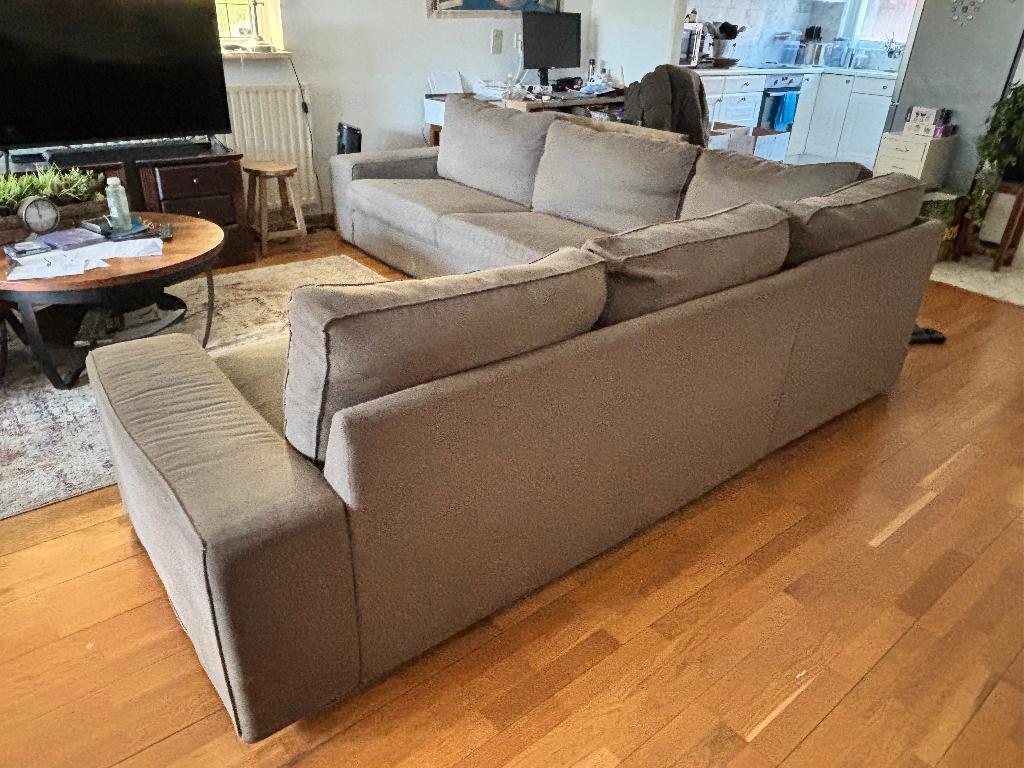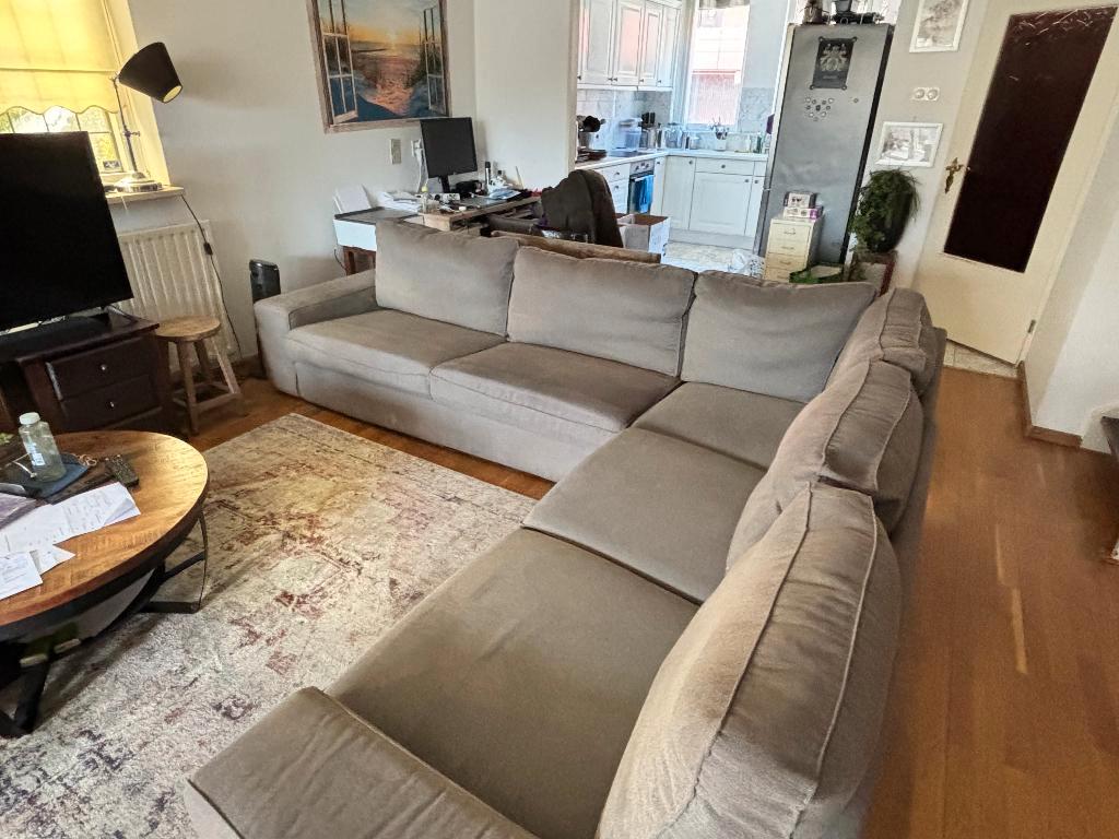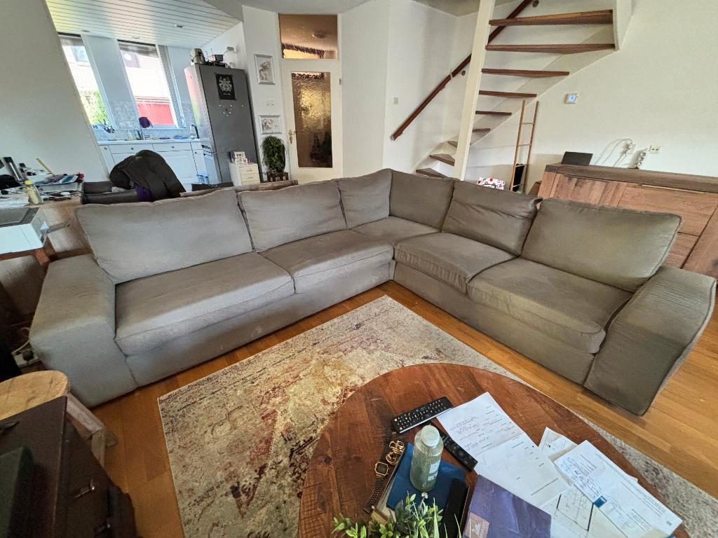 Gratis af te halen: ikea kivik hoekbank (5-zits) in de kleur grijs. De bank is circa 9 jaar oud en nog prima als basisbank, bijvoorbeeld voor een tweede woning, studentenhuis of voor iemand die ’m wil