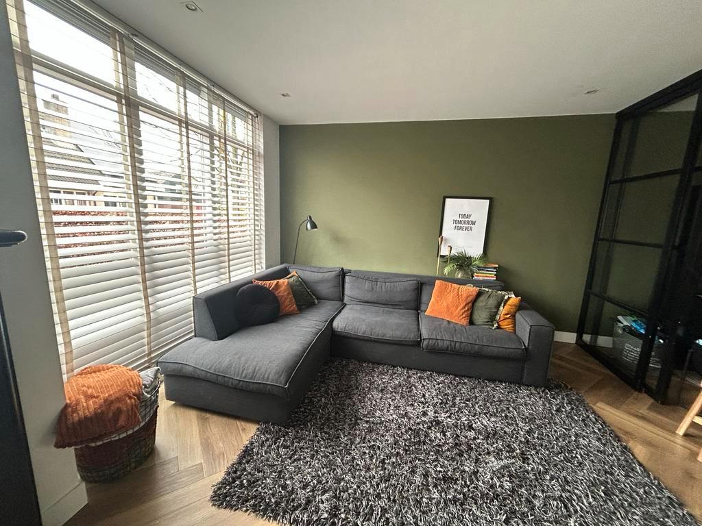 Donkergrijze hoekbank met afmetingen 290 cm aan de muurkant en 200 cm aan de raamkant. De bank is zsm gratis af te halen!