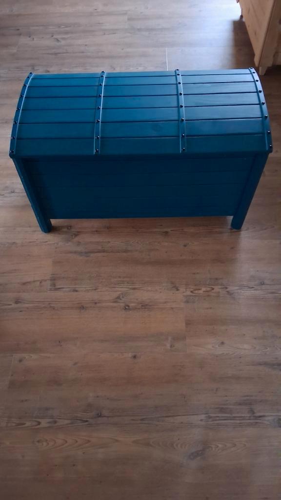 Leuke blauwe speelgoedkist. Ideaal voor het opbergen van speelgoed in de kinderkamer of woonkamer. De kist is in goede staat en biedt voldoende ruimte. Gemaakt van hout.