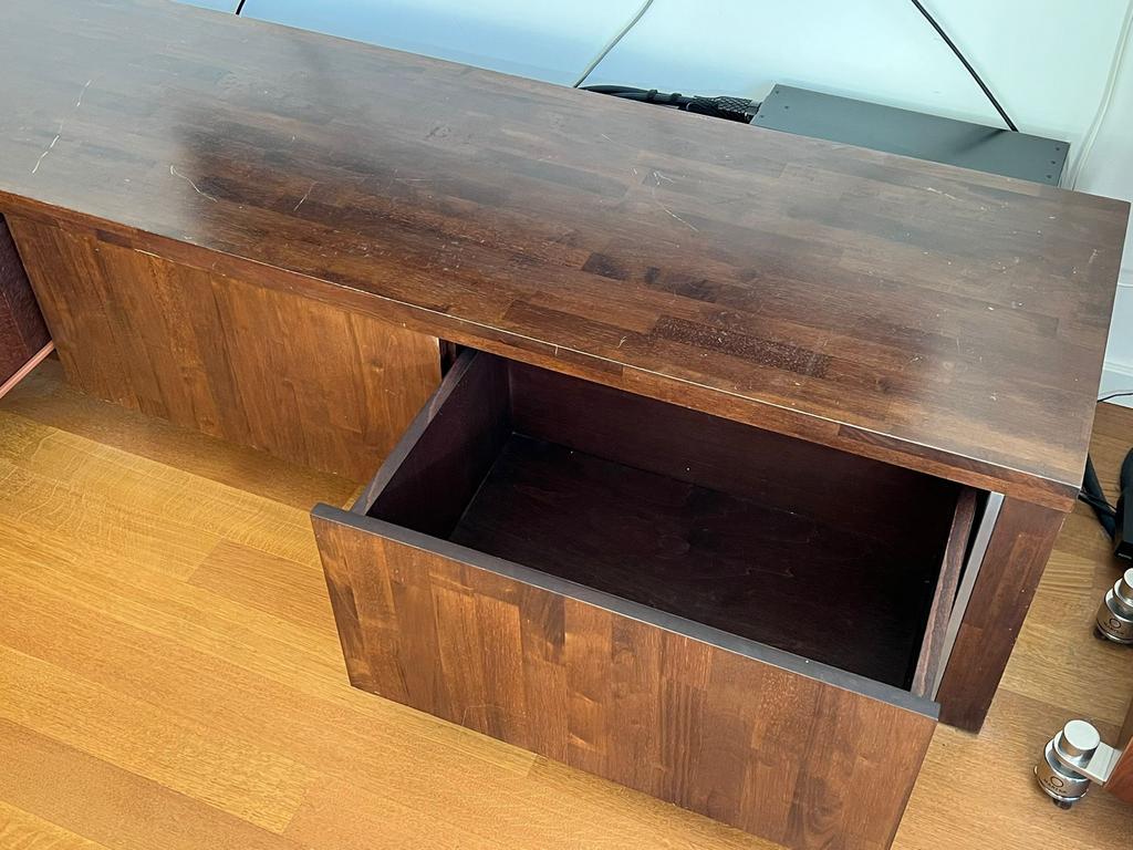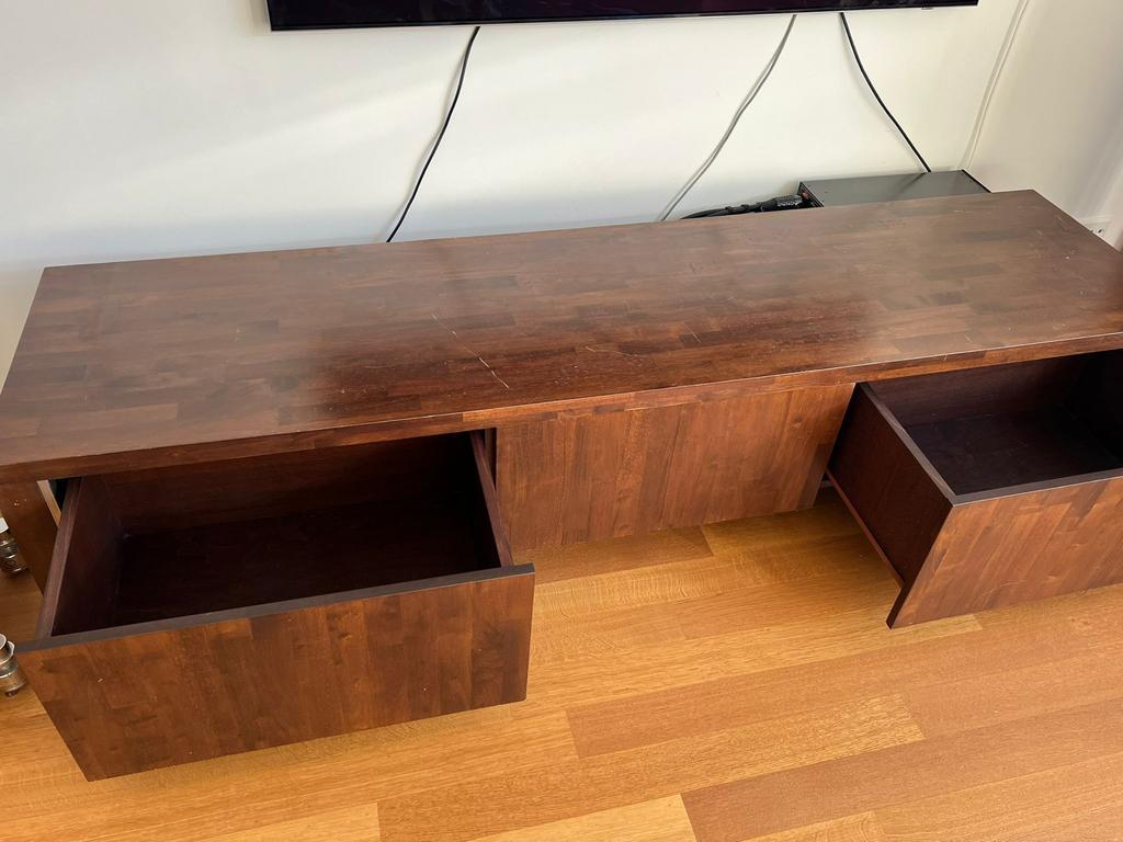Mooi tv meubel van piet klerkx. Afmetingen zijn: 210cm lang, hoogte 45cm, diep: 55cm mooi meubel met 2 lades & 1 planken kastje dit meubel biedt voldoende opbergruimte voor al uw media-apparatuur