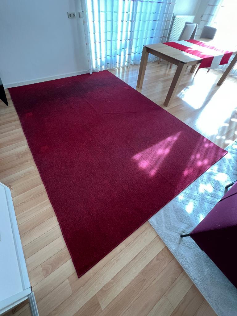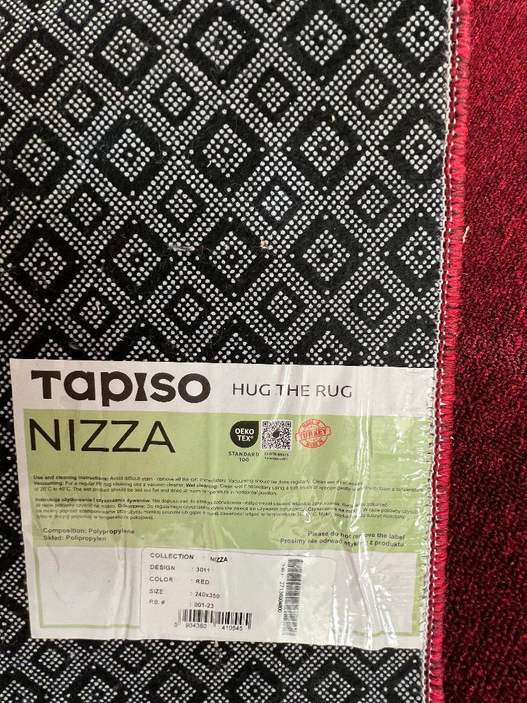 Tapiso nizza vloerkleed afmetingen: 240 x 350 cm er zitten afdrukken in van vier tafelpoten en ook wat verkleuringen
