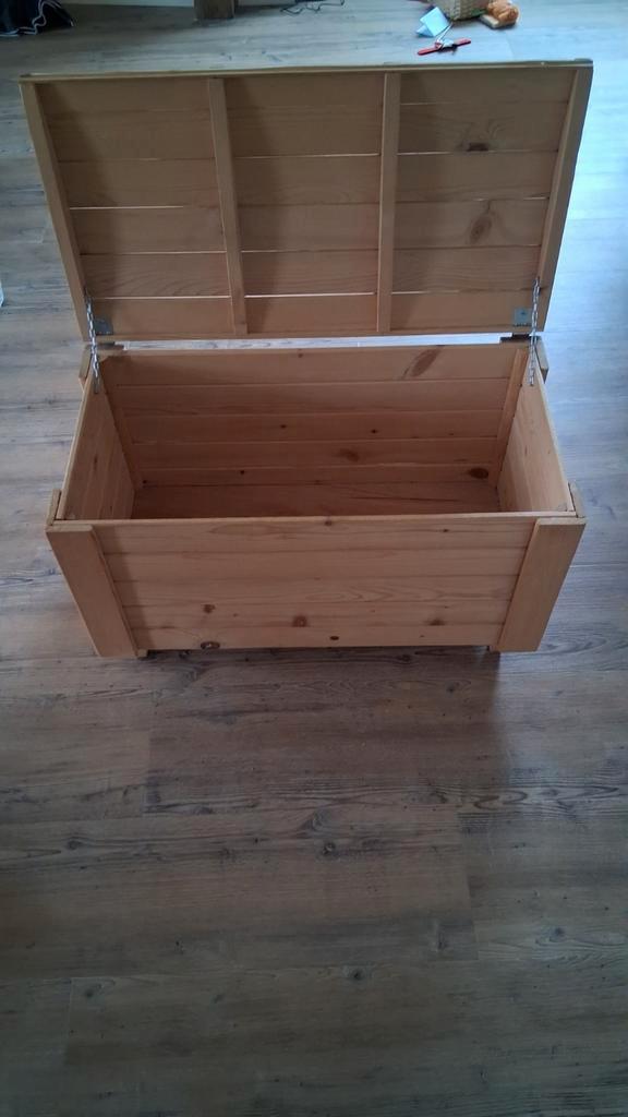 Leuke houten speelgoedkist. Ideaal voor het opbergen van speelgoed in de kinderkamer of woonkamer. De kist is in goede staat en biedt veel opbergruimte. Afmetingen zijn geschat, zie foto''s voor de