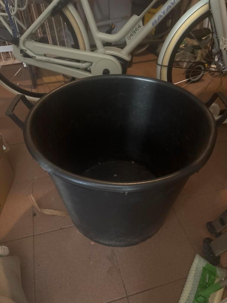 Zwarte kunststof kuip, gebruikt maar in goede staat. Ideaal voor diverse doeleinden zoals tuinieren, opslag of schoonmaak. Voorzien van handgrepen voor gemakkelijk transport.