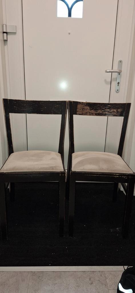 Gratis af te halen: 3 eenvoudige eetkamerstoelen. Ze vertonen gebruikerssporen en zijn toe aan een opknapbeurt. Met wat schuren en een nieuwe verflaag zijn ze weer als nieuw. De zitvlakken zijn makkel