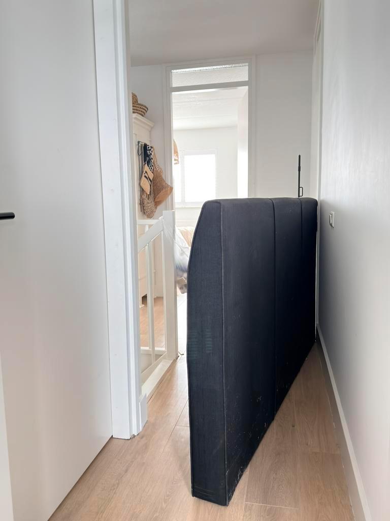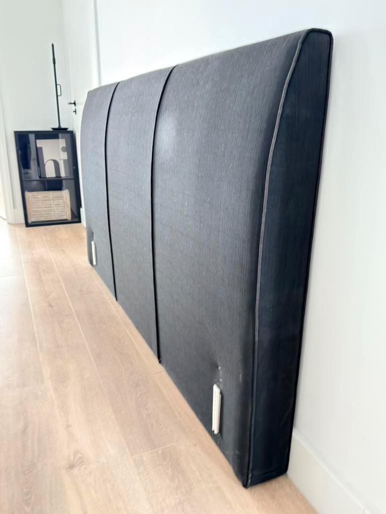 Hoofdbord gebruikt voor boxspring van 180 cm breed. Afmetingen hoofdbord: 202 cm breed 112 cm hoog 14 cm dik aan de onderkant loop taps toe naar 7 cm aan de bovenkant