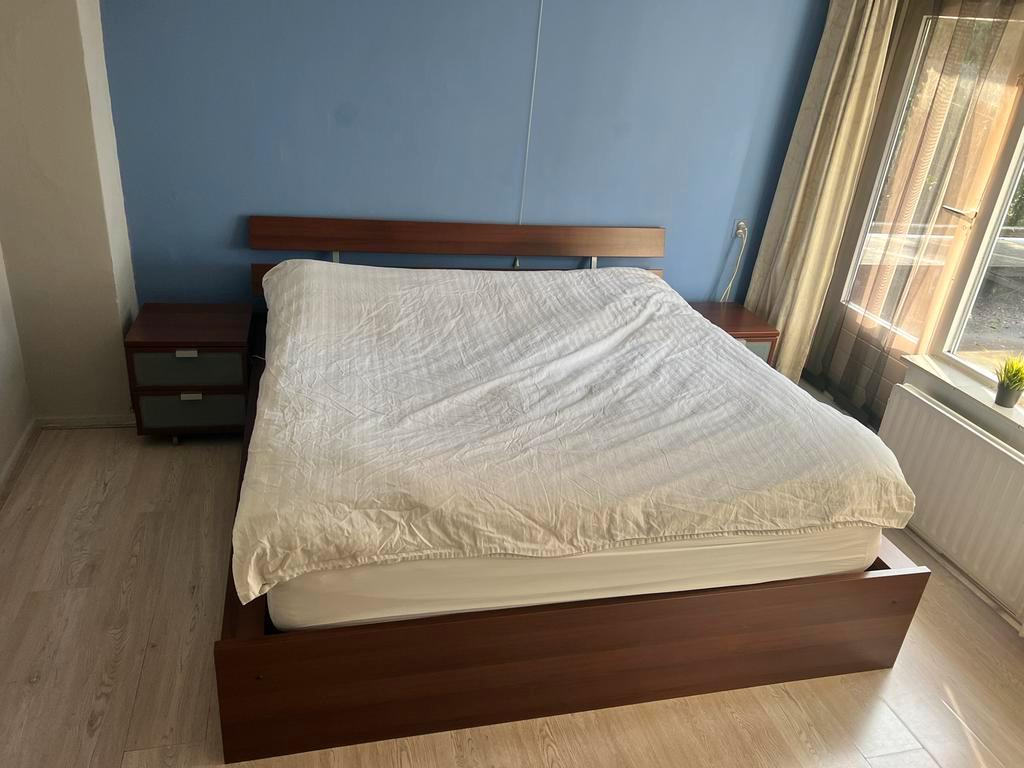 Complete slaapkamer set van ikea bestaande uit een tweepersoonsbed met lattenbodem, twee bijpassende nachtkastjes en een hoge ladekast. Eventueel inclusief matrassen. Alles in goede staat. Gratis op t