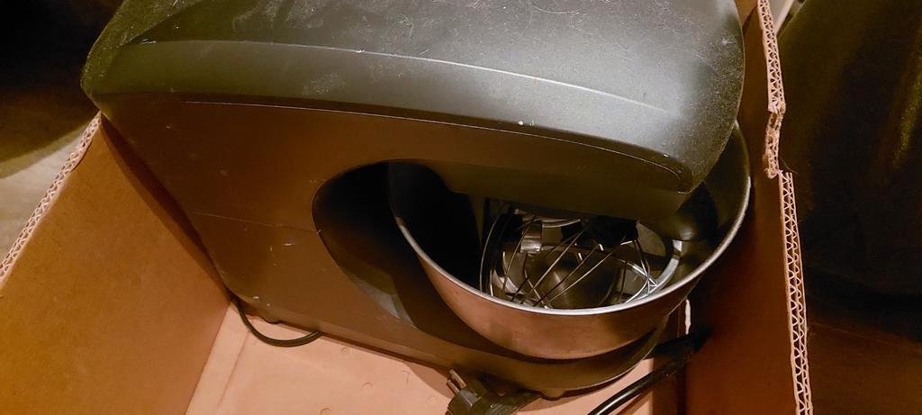 Deze keukenmachine is ideaal voor het kneden van deeg, mixen van ingrediënten en kloppen van slagroom. De machine is gebruikt, maar in goede staat en klaar voor gebruik. Met verschillende snelheden en