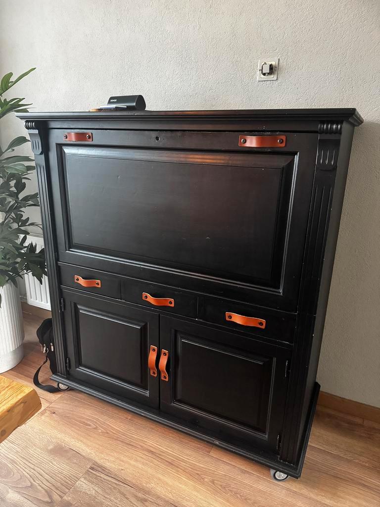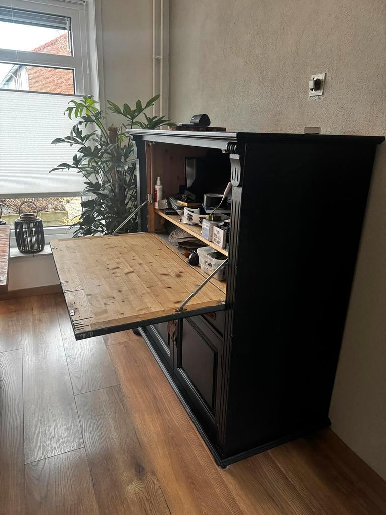 Kast met ruime inhoud. Hoog 134/ breed 124/ diep 60 cm.