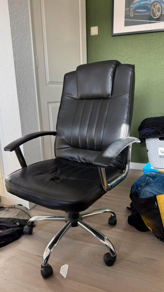 Gebruikte zwarte bureaustoel. Zo meenemen. De hevel functie kan niet meer vast worden gezet.