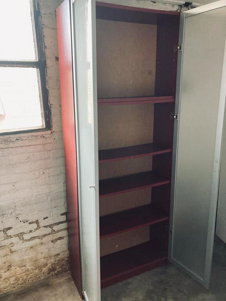 Gratis op te halen opbergkast, ideaal voor extra opbergruimte in de berging of garage. De kast is gebruikt. Voorzien van glazen ruiten. Afmetingen: hoogte 202,5 cm, breedte 80,5 cm, diepte 30,5 cm. Be