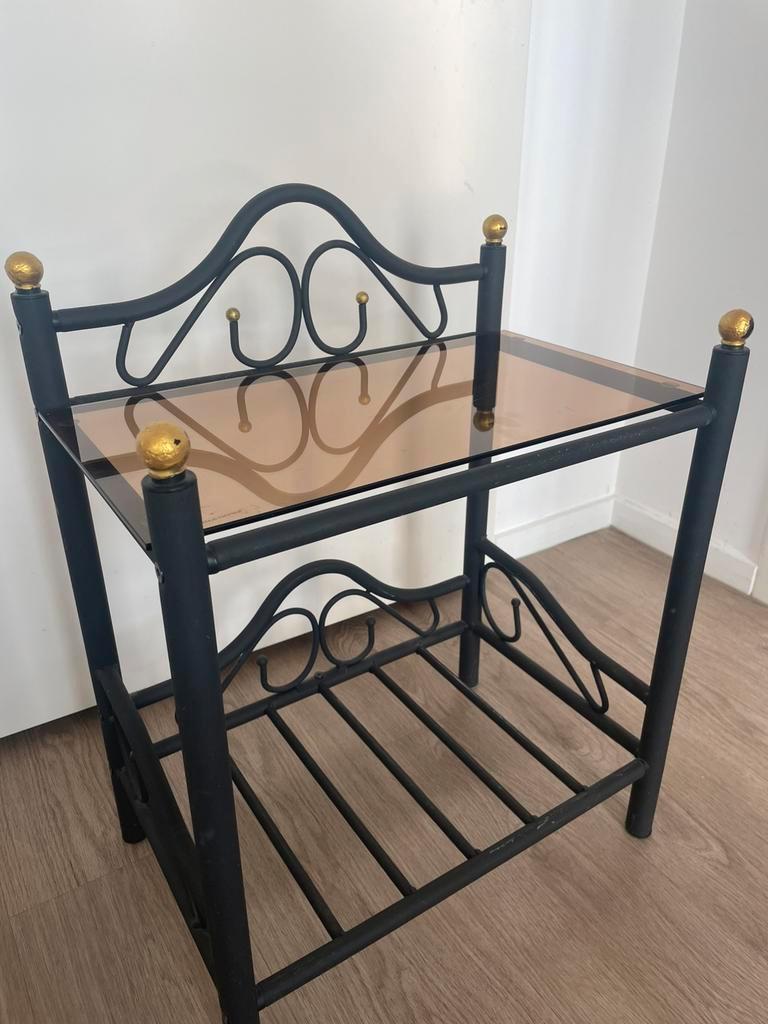 Ik wil dit nachtkastje graag gratis weggeven! Het is een metalen model van ikea met een glazen blad. Als je interesse hebt, laat het me dan weten!