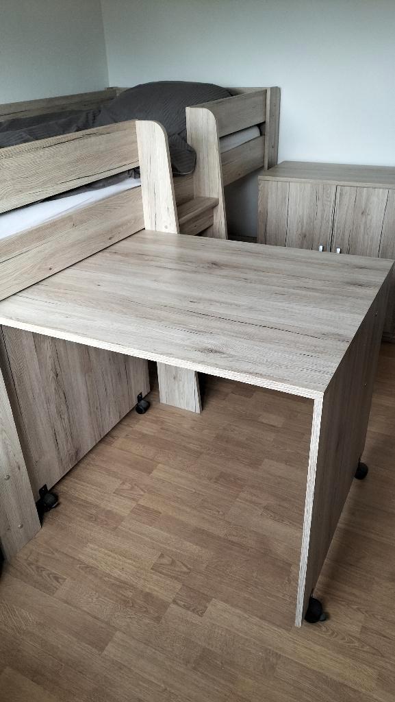 De kast is 37 breedte bij 74 lang en 75 hoog. Het bureau is 90 bij 75 en 75 hoog alles is in cm.