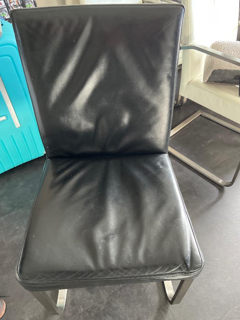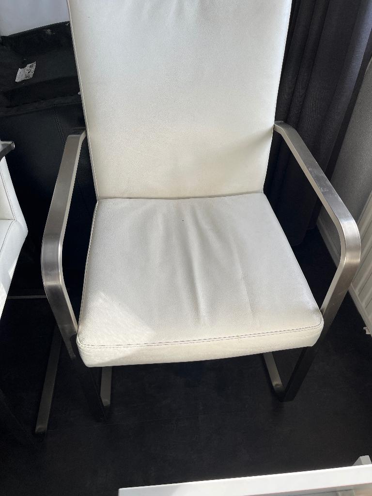 Leren eetkamerstoelen 4 witte met armleuning 2 zwarte zonder armleuning
