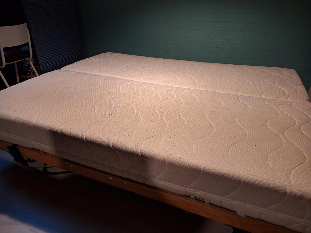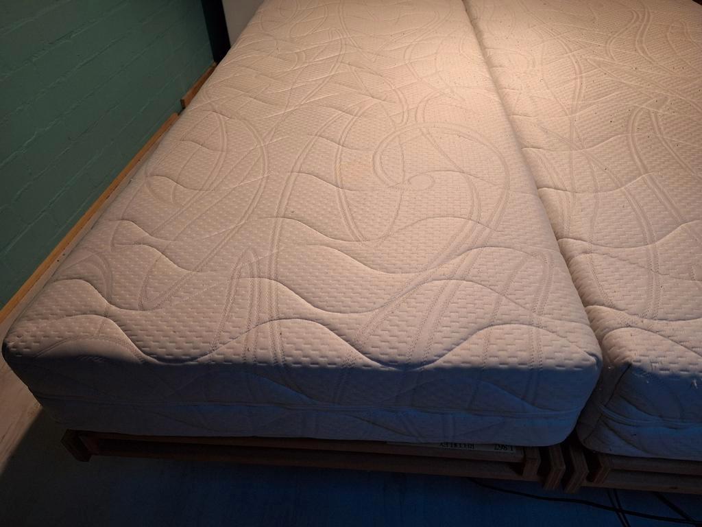 Twee elektrische bedden met afmetingen 80x200 cm. Inclusief matrassen met afritsbare hoezen. De bedden zijn verstelbaar en bieden comfort. Ideaal voor wie op zoek is naar een comfortabele en aanpasbar