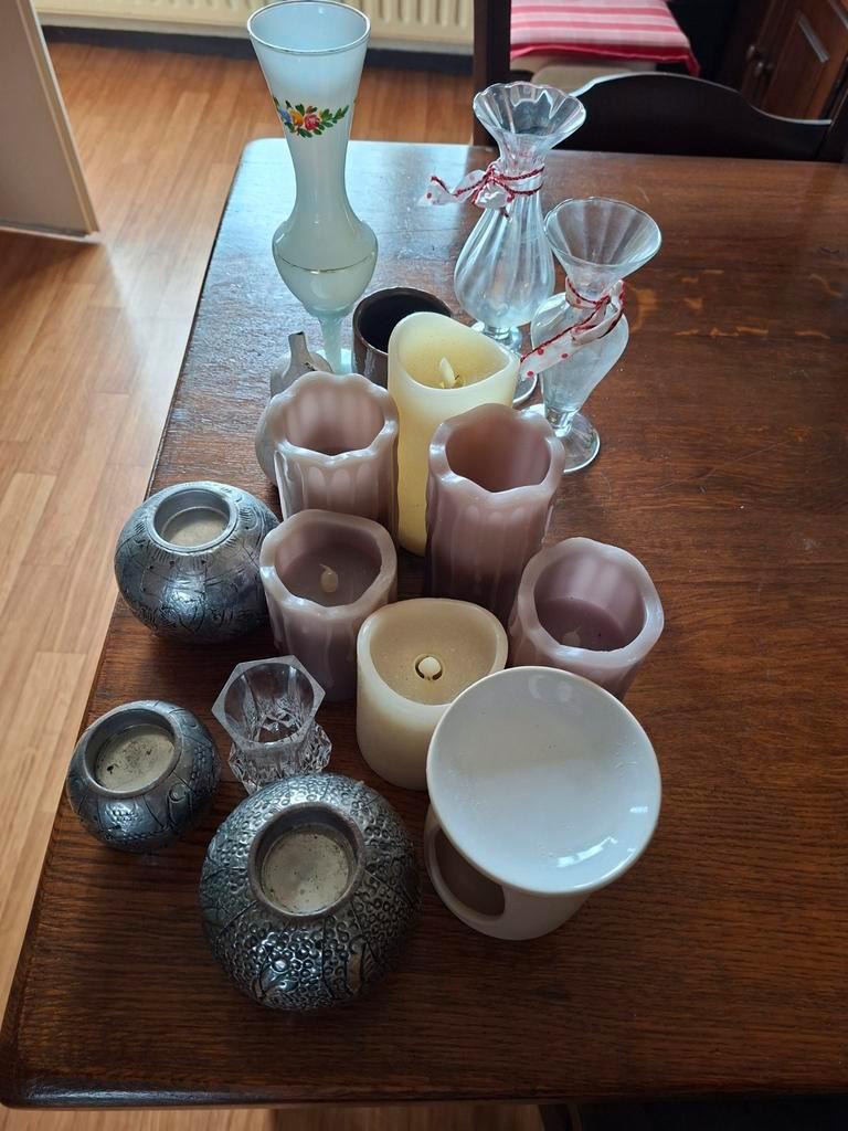 Kaarsen voor battery dus veilig,waxine houders,en leuke vaarsjes.alles samen gratis op te halen..
