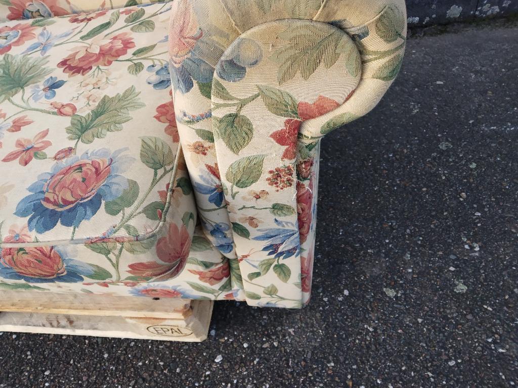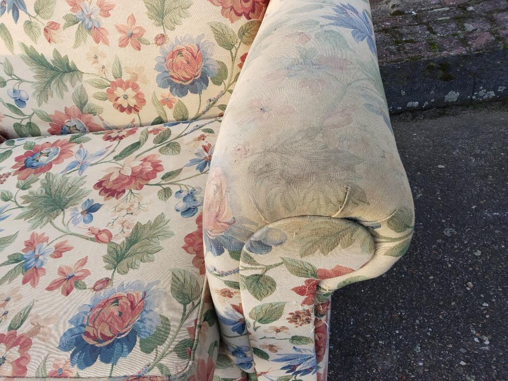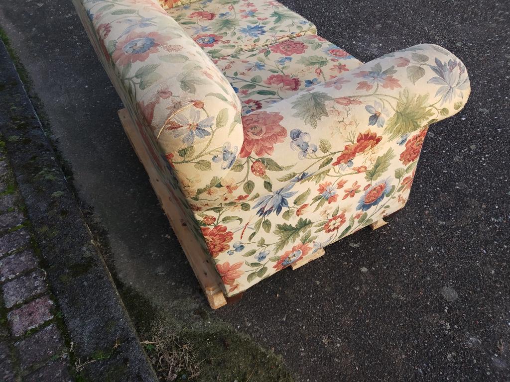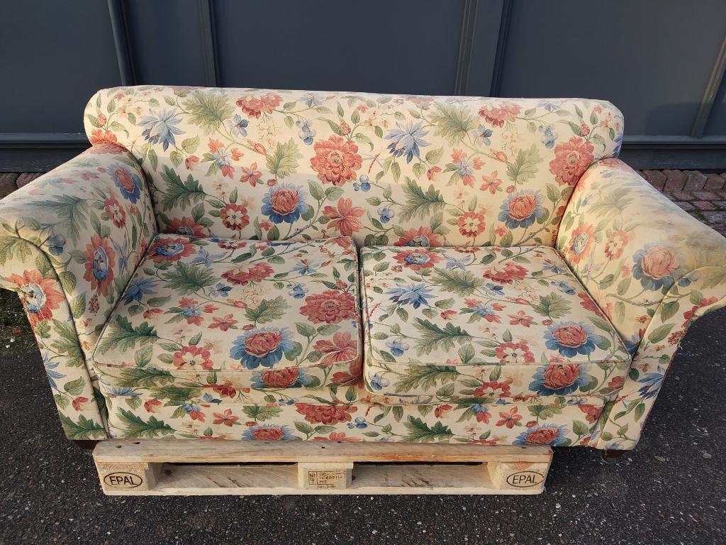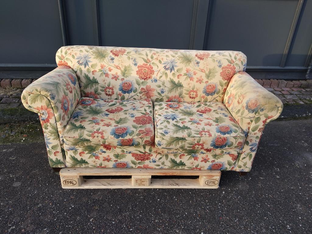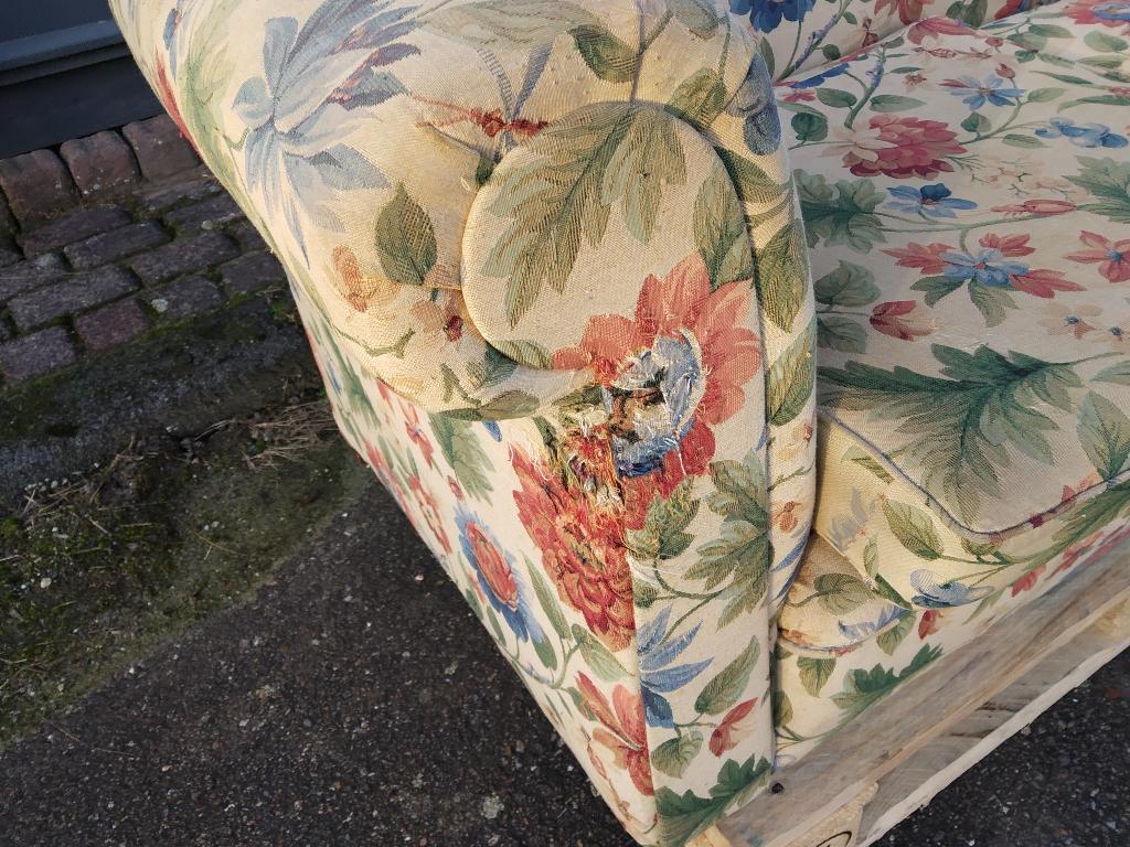 Fijn zittende bank, maar past niet meer in het interieur. Bekleding is beschadigd door de kat, dus zou voor het mooi opnieuw bekleed moeten worden. Is al lang in de familie en zou al meer dan 100 jaar