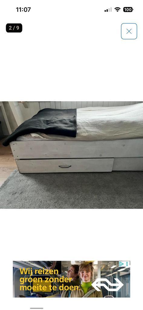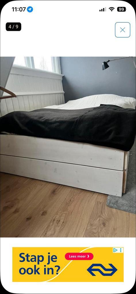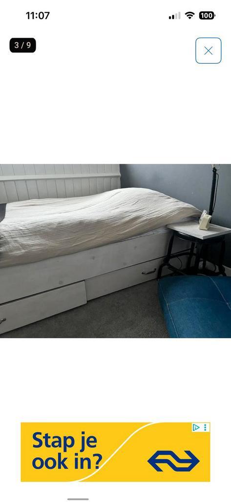 Gratis bed incl. Matras. Wit gebeitst buiten maten: 124x208 matras 200x120 de eerste die hem komt halen mag hem meenemen.