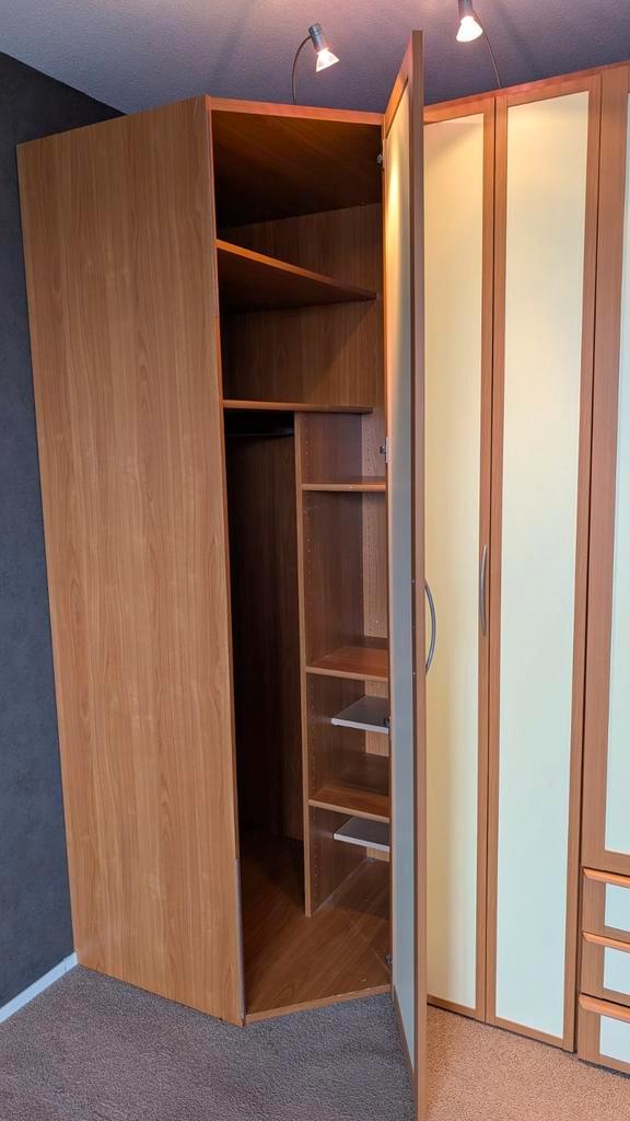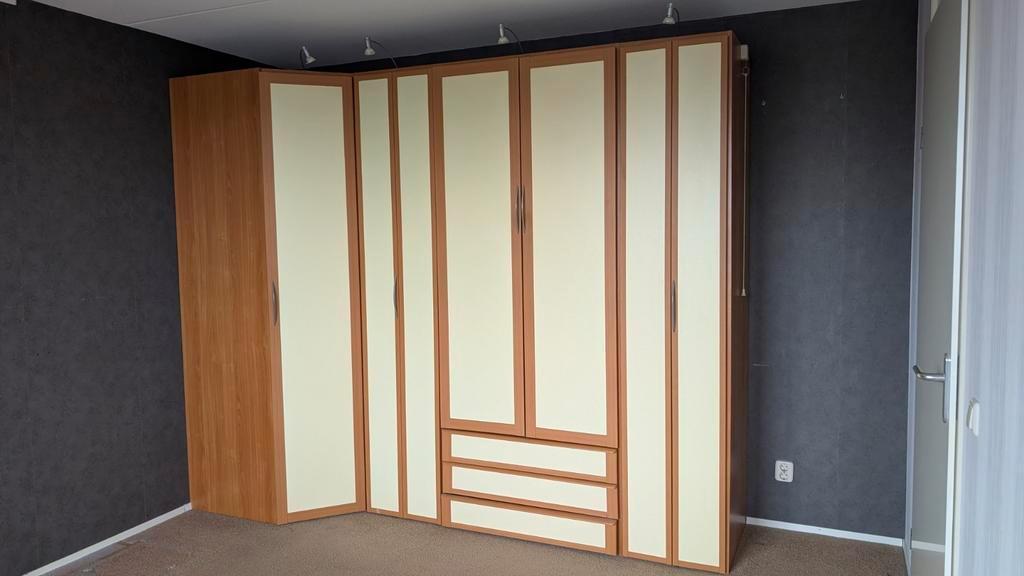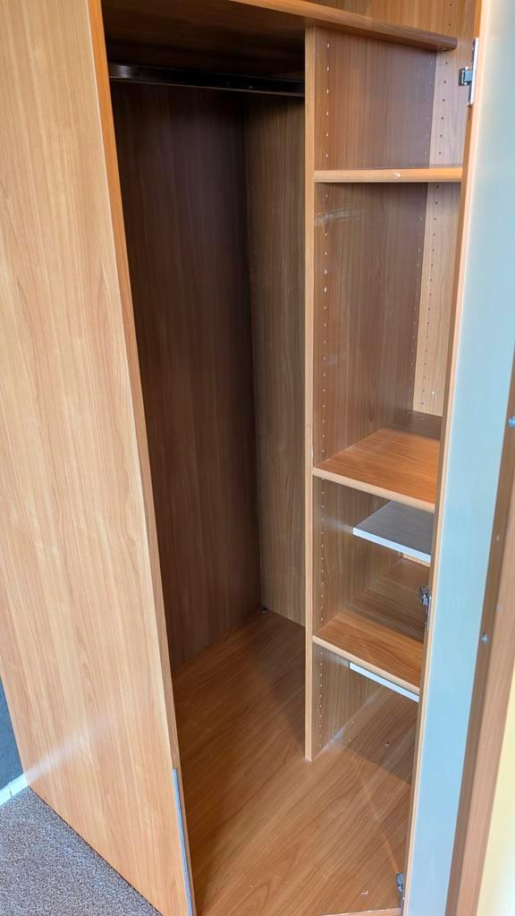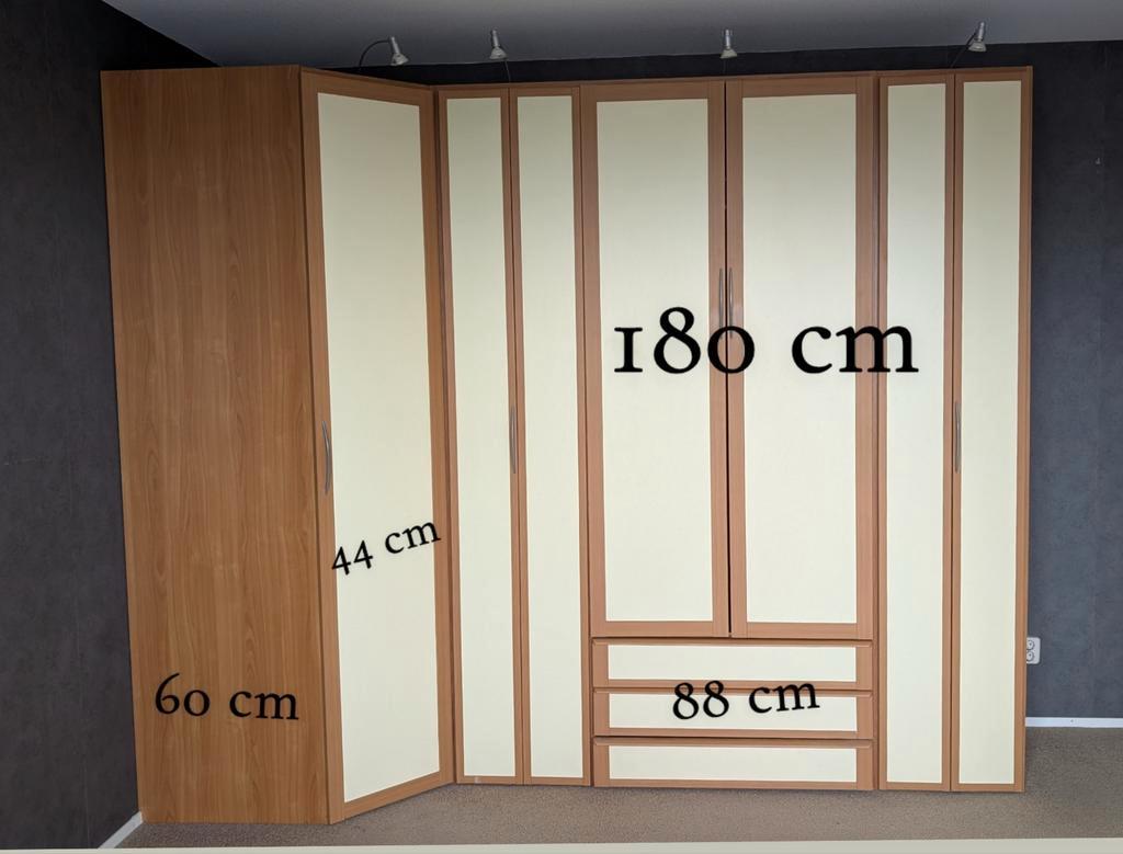 Mooie kledingkast in goede staat. Mag gratis opgehaald worden. Let op! De kast moet nog uit elkaar gehaald worden. Formaten: totale lengte 2.27 Meter diepte rechts buitenmaat, 90 cm, binnenmaat 86 cm