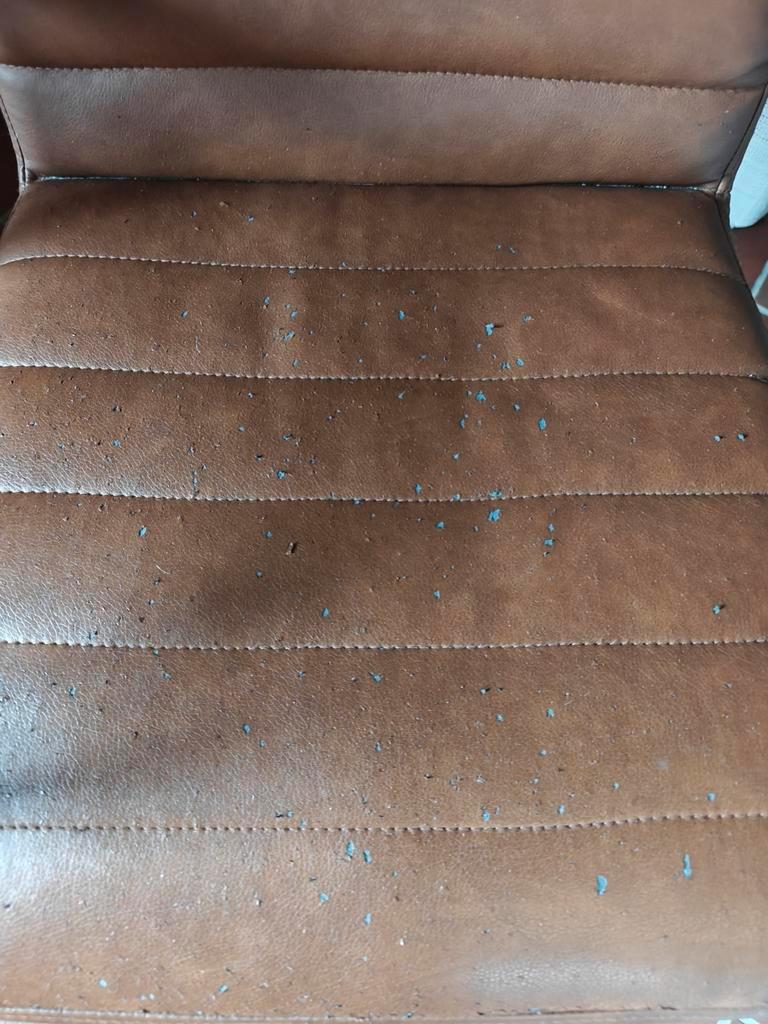 Gebruikte stoelen, door katten gebruikerssporen vandaar gratis 4 stoelen industriële look