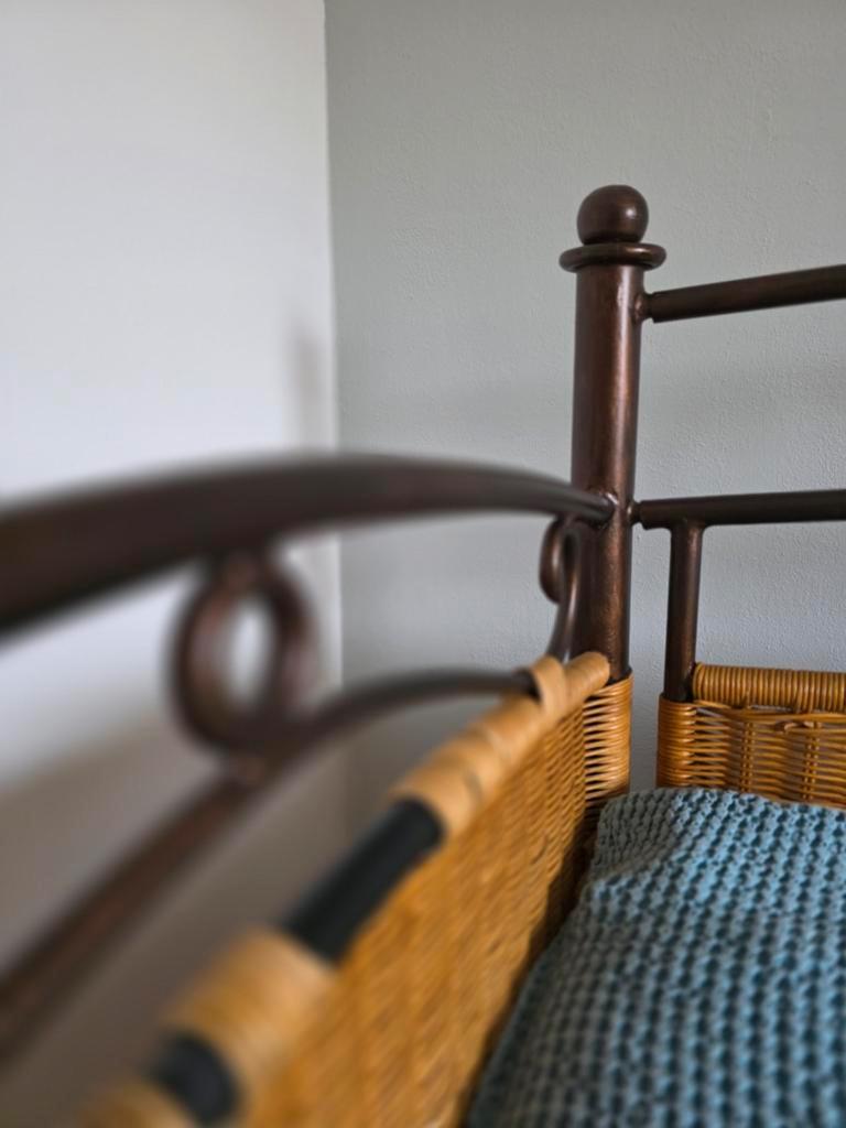 Gratis af te halen ivm verhuizing: metalen bed met gevlochten riet. Het bed is nog zo goed als nieuw! Ruim eenpersoons beds. Eén of twee matrassen mogen eventueel ook mee. (Hoeft niet(