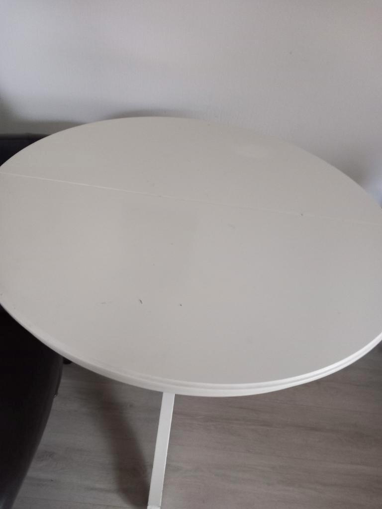 Witte ronde eettafel die uitgeklapt kan worden tot 1.55 Cm tussenstuk 45 cm breedte 1.10 Tafel is al gedemonteerd