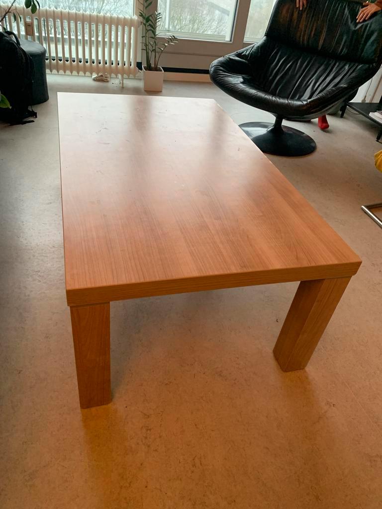 Mooie houten koffietafel, perfect voor in de woonkamer. De tafel is stevig en heeft een warme uitstraling. Ideaal voor het plaatsen van drankjes, boeken of decoratie. Afmetingen: ongeveer 100x50 cm. C