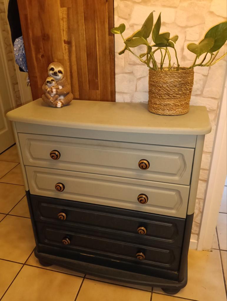 Gratis ladekastje. De rails van de onderste lade is kapot en moet vervangen worden. Het kastje heeft ook een nieuw verfje nodig. Ideaal voor iemand die handig is en een leuk project zoekt!