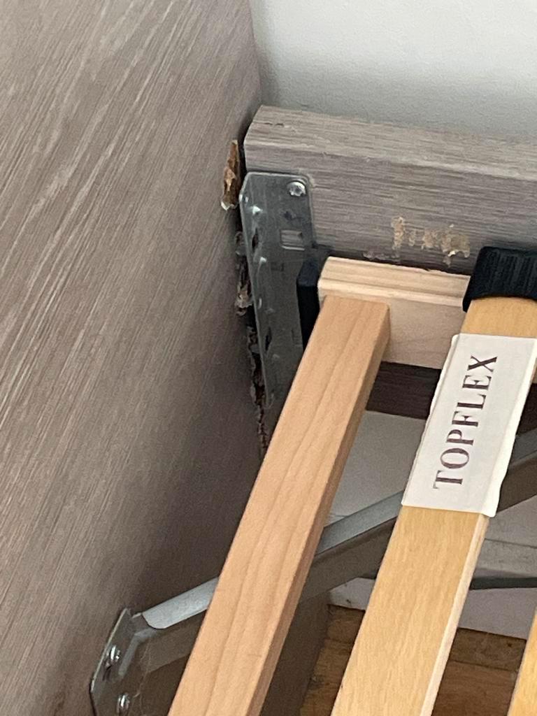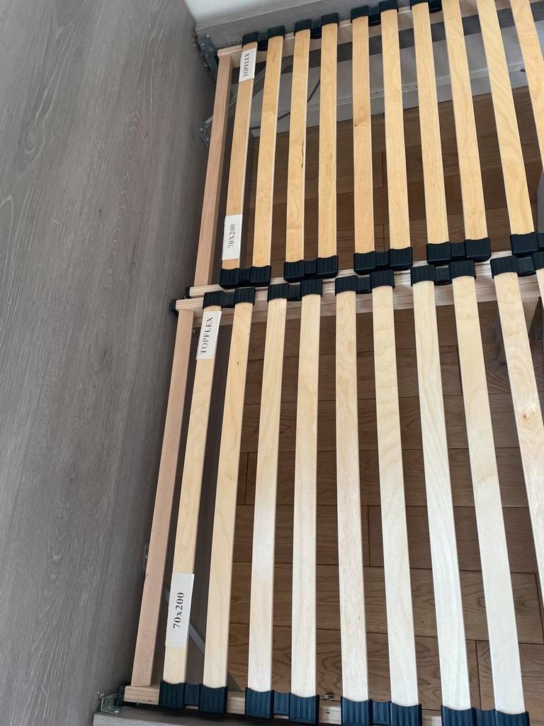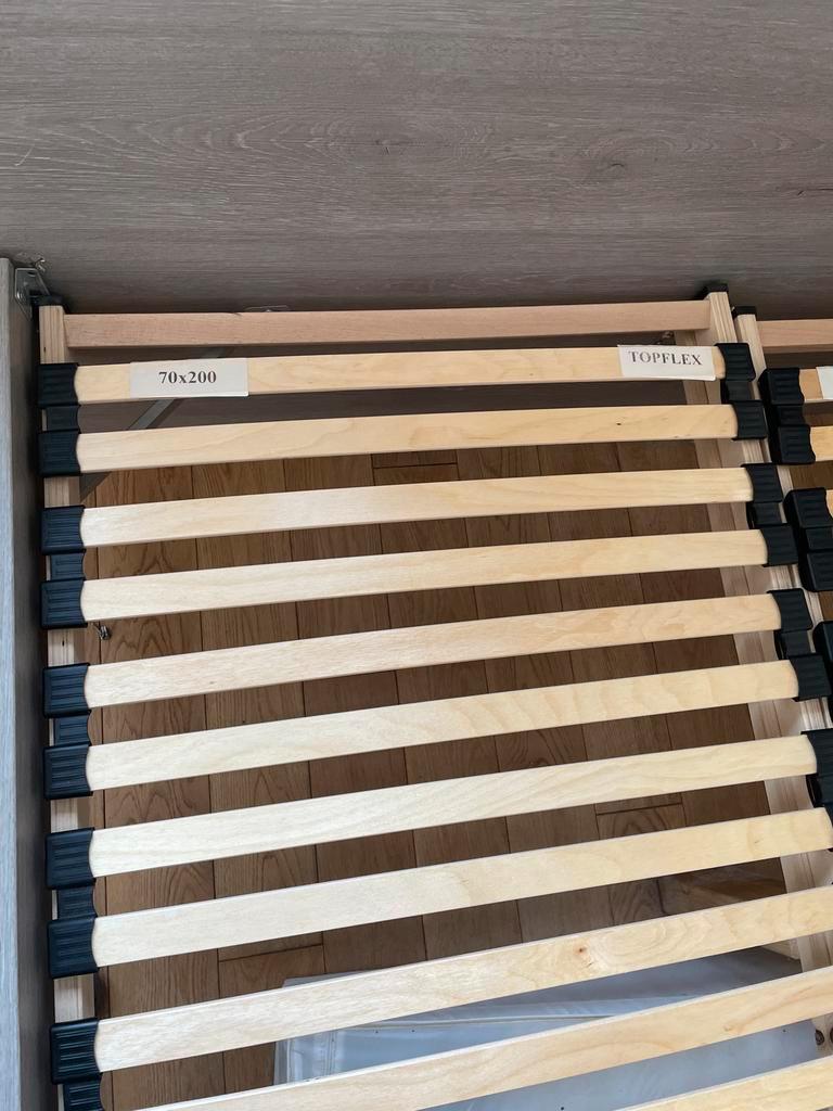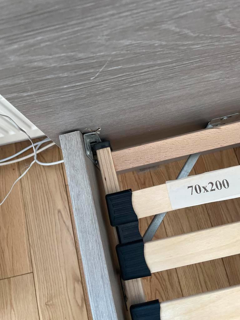 Gratis af te halen: grijs bed van 140x200 cm, inclusief twee lattenbodems. Het bed is in prima staat, maar het hoofdbord moet even stevig vastgezet worden. Ideaal voor een handige klusser!