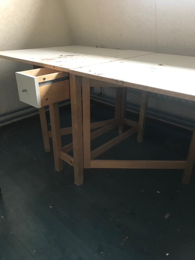 Super handige hobby werktafel met lade. Wel verfplekjes maar die kun je met terpetine weghalen.