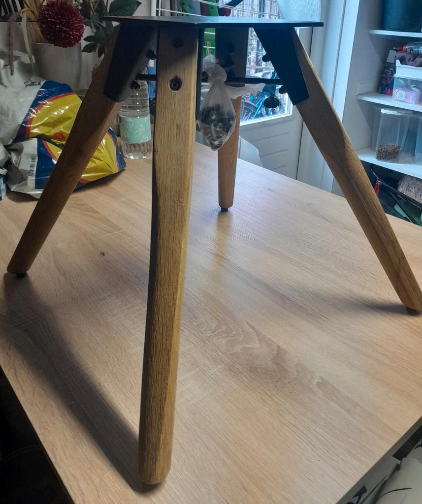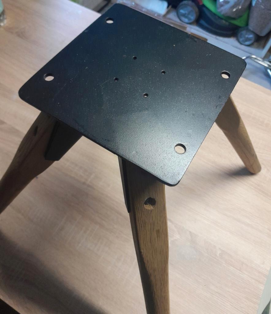 Houten onderstel voor een kruk of klein tafeltje. Het onderstel is stevig en in goede staat. Ideaal voor een diy project of om een bestaand tafelblad te vervangen. Afmetingen zijn ongeveer 48x48cm en