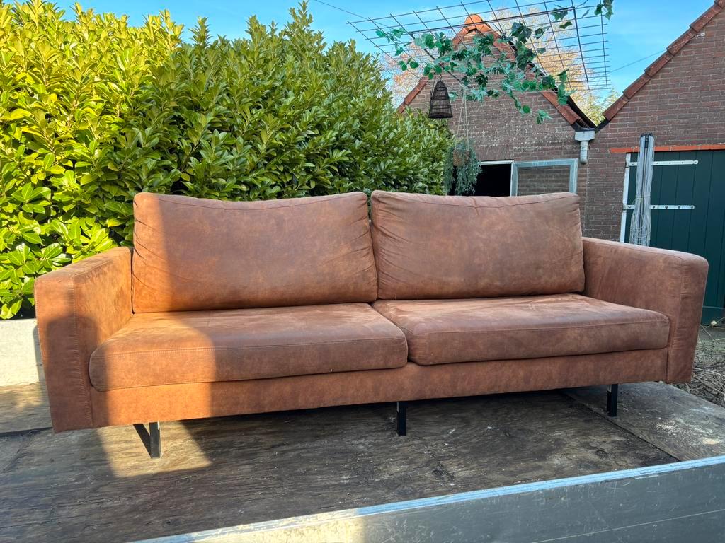 Grote bruine bank van kunstleer. De bank zit heerlijk en kan nog best een ronde mee en kan gratis worden opgehaald. Indien je in goes of kapelle woont wil ik de bank ook gratis brengen (ik vind het zo