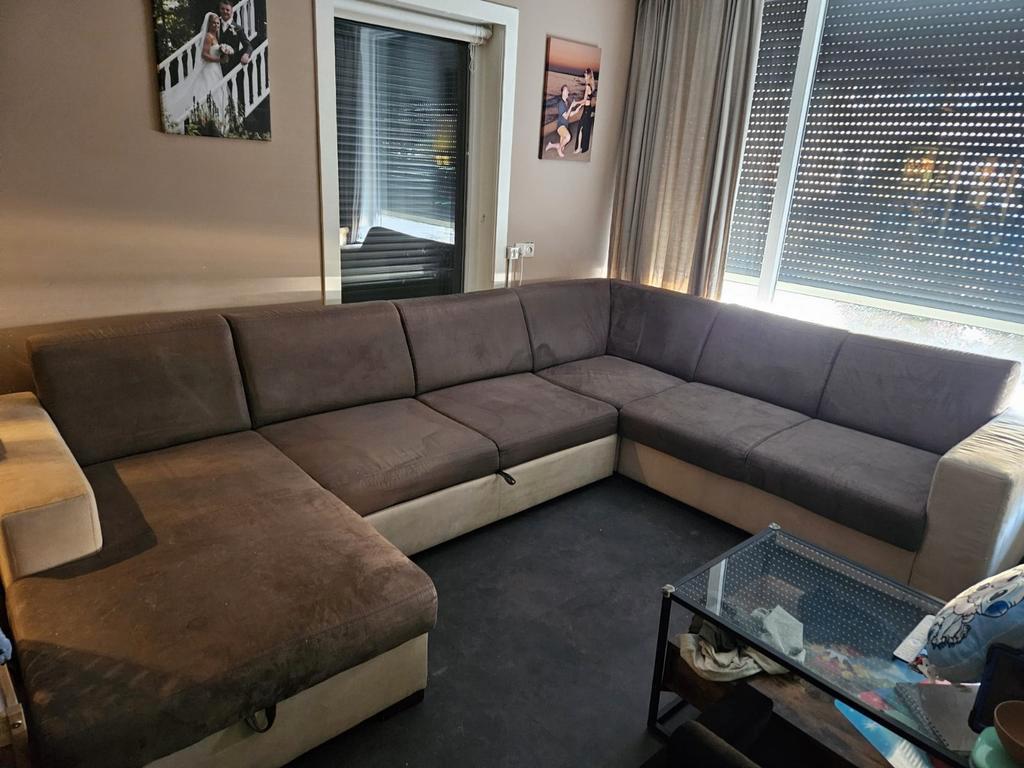 Vandaag ophalen!!! Nette bank met wat frisdrank kringen erop en hij komt uit een woning met katten, maar voor iemand die een bank zoekt voor in de keet of mancave, kleden erover en je hebt een primaba