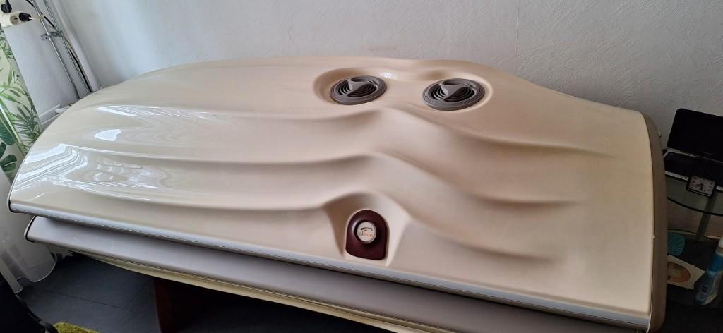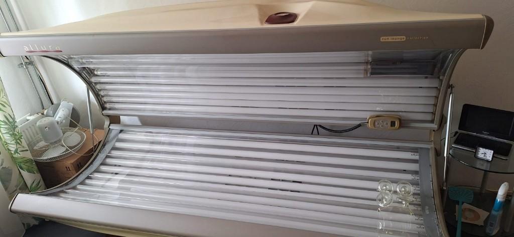 Zonnebank in goede staat, snelbruinlampen met gezichtsbruiner gratis op te halen