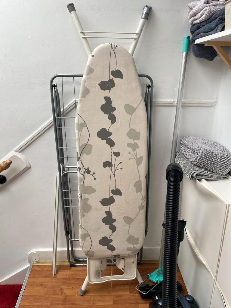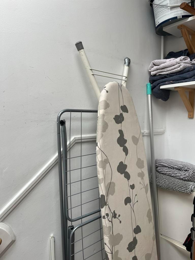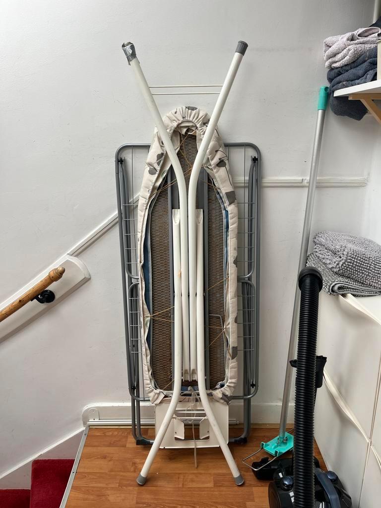 Gebruikte strijkplank in goede staat. Ideaal voor kleine ruimtes, makkelijk op te bergen. Lichte gebruikssporen, maar functioneert perfect.