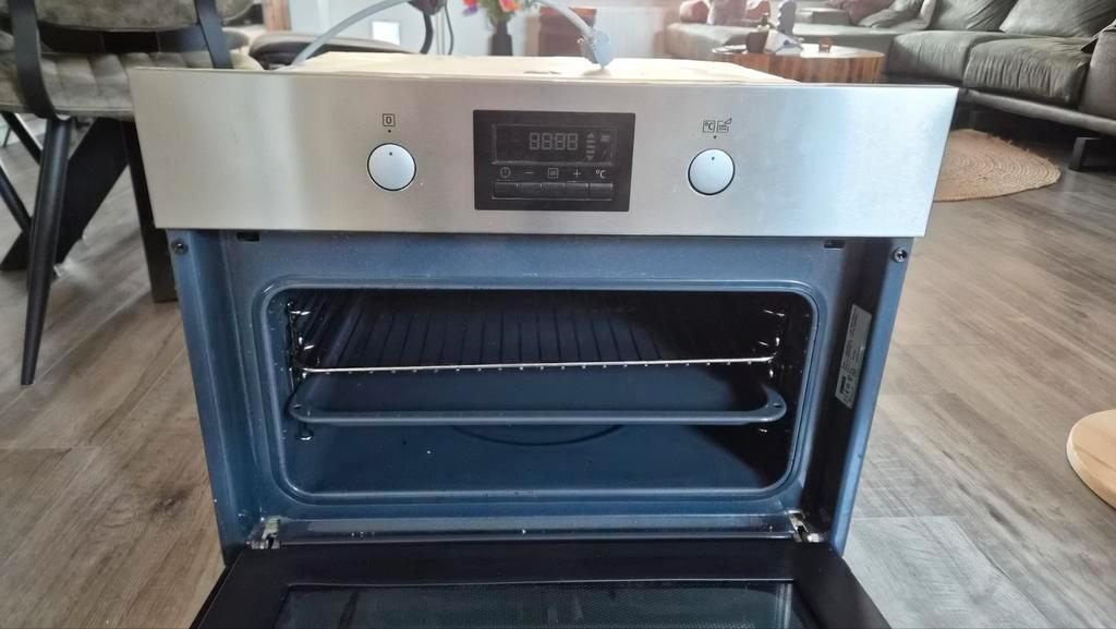 Gratis zanussi inbouwoven! Werkt nog prima, maar de knoppen moeten wat harder ingedrukt worden. Inclusief rooster en bakplaat. Zie de afbeeldingen voor het formaat en type.