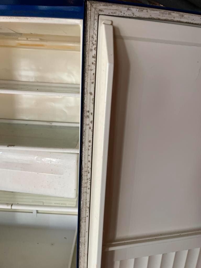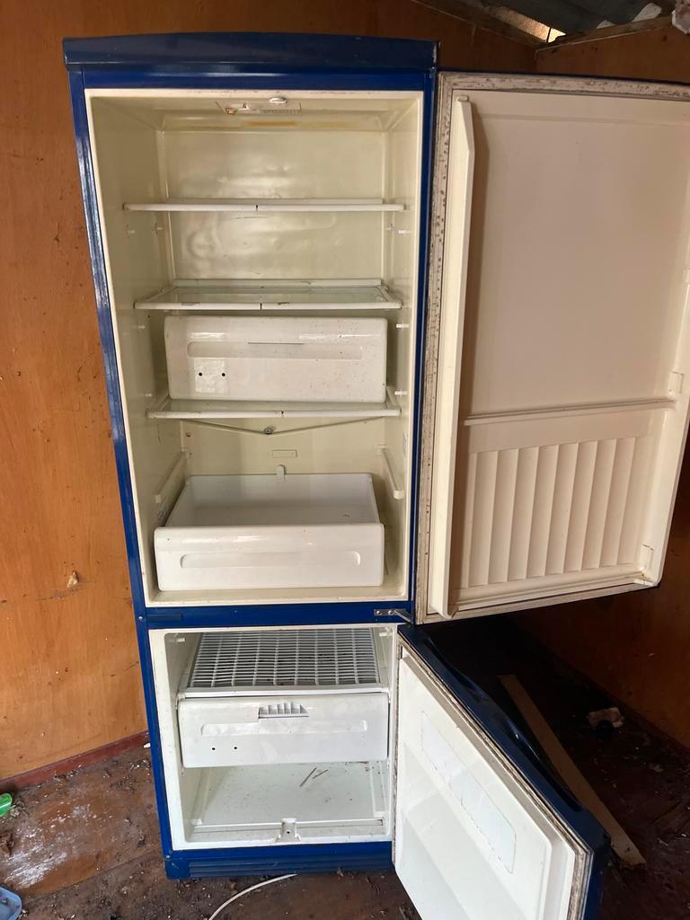 Oudere blauwe koelkast met vriesvak. De koelkast is gebruikt en heeft wat gebruikerssporen, zoals te zien op de foto''s. Ideaal voor studenten of als extra koelkast. De koelkast heeft een vriesvak.