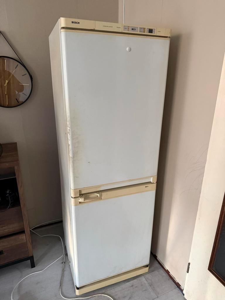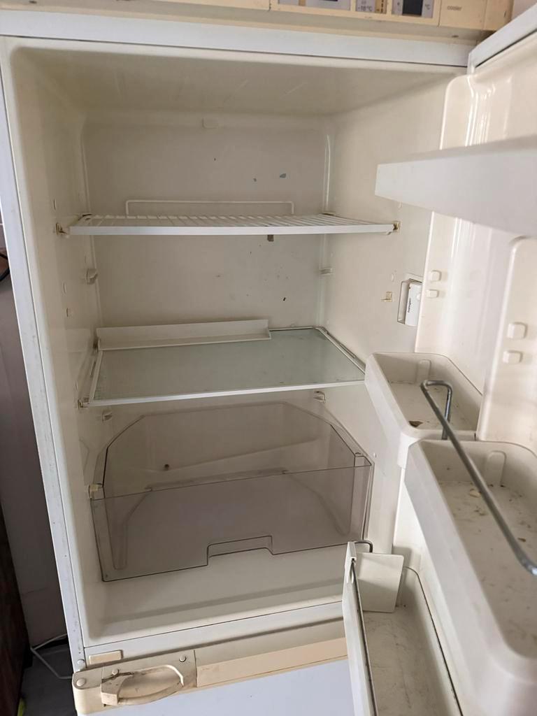 Oude koelkast die werkt. Gebruikssporen aanwezig. Staat in de weg