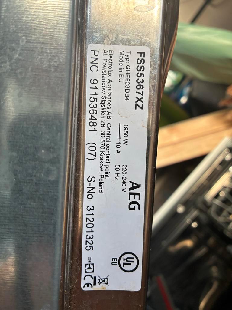 Aeg vaatwasser met een defecte afvoerpomp. Wellicht geschikt voor onderdelen of reparatie. Model: fss5367xz. Zie foto''s voor details.