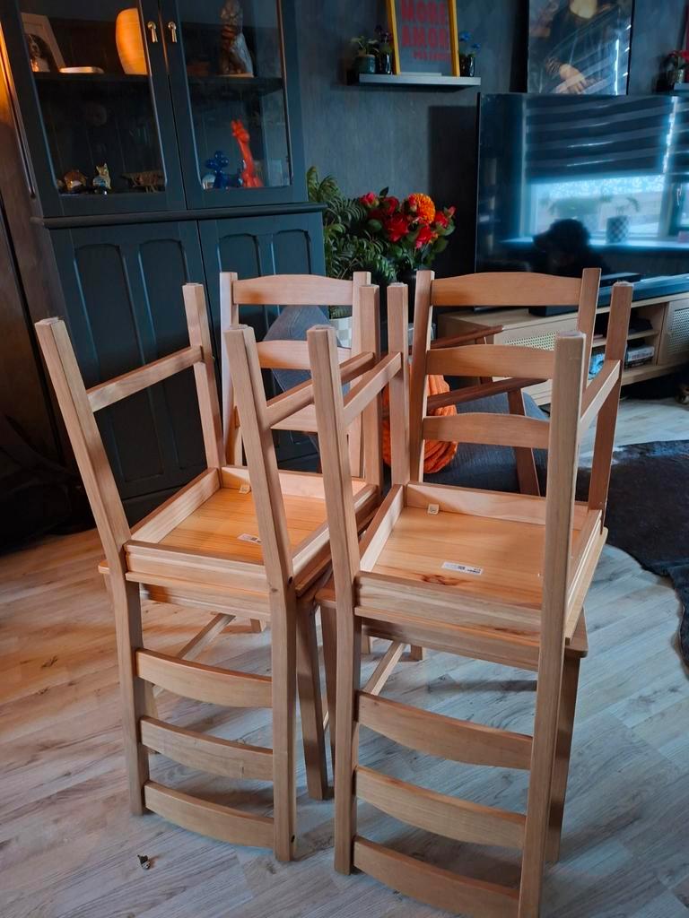 4 stuks eetkamerstoelen van ikea (jokkmokk). Gratis af te halen in heemskerk. Twee stoelen hebben krassen op de rugleuning (zie laatste foto).