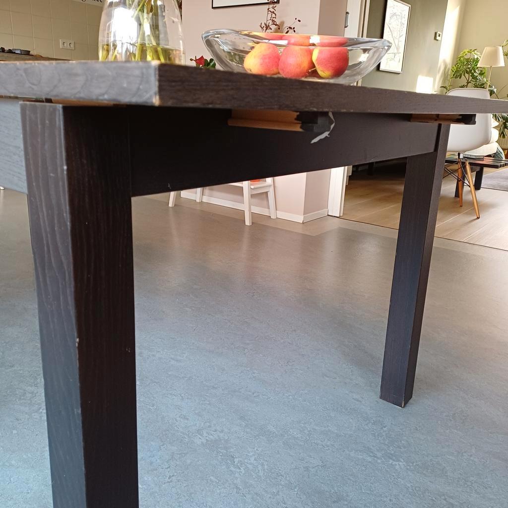 Gebruikte ikea eettafel, uitschuifbaar tot 180, 220 of 260 cm. Tafel is na vele gezellige etentjes in gebruikte staat. Biedt ruimte aan 6-10 personen. Op de foto staat de tafel ingesteld op 220 cm. Hi