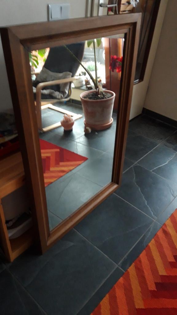 Spiegel met voleiken houten lijst, afmetingen 107.5Cm x 73cm