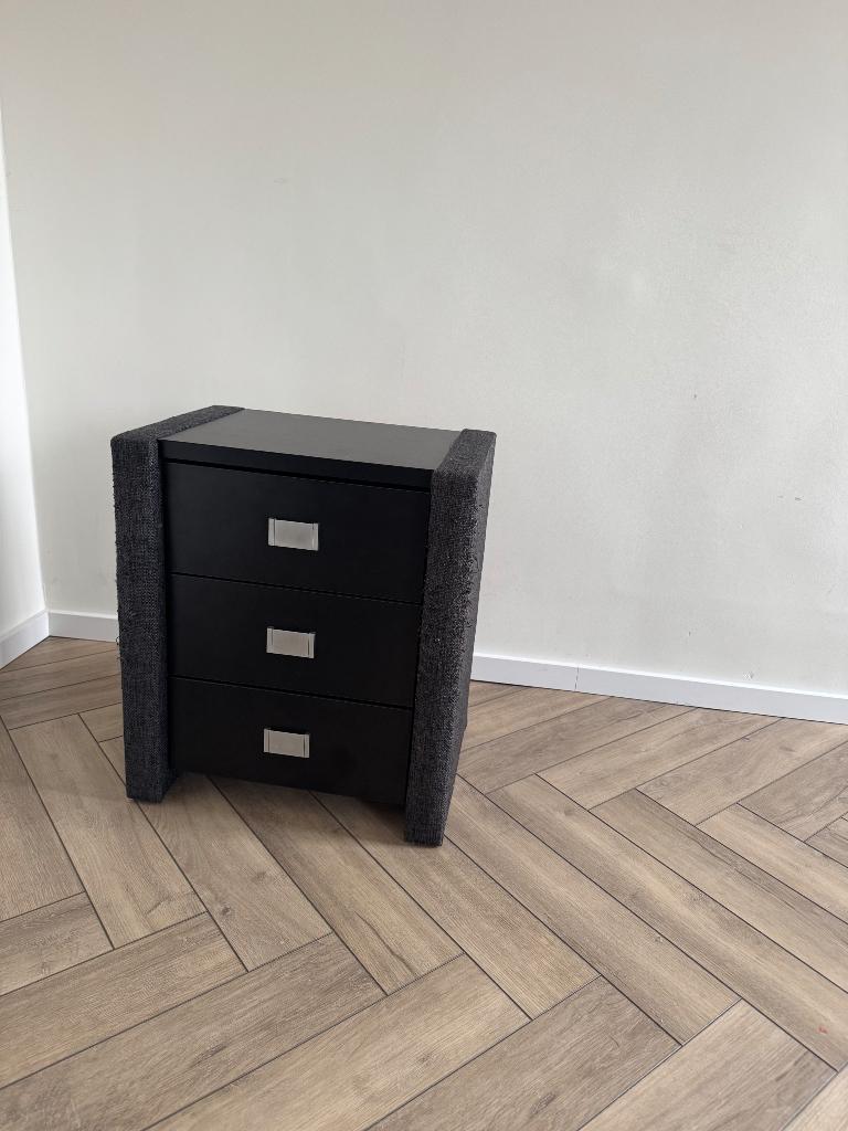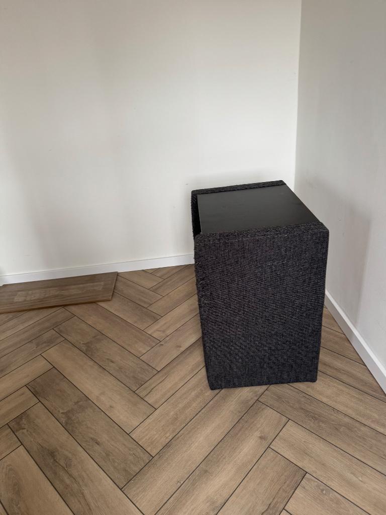 Stof is beschadigd aan de voorkanten van beide kastjes. Ivm verhuizing gaan ze weg. Wie het eerst komt kan ze meenemen