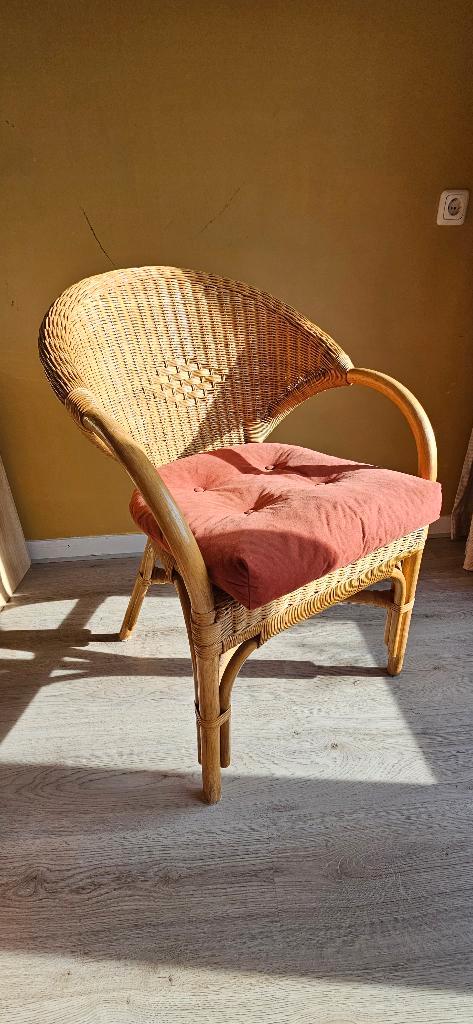Mooie rotan fauteuil met comfortabel zitkussen. Stevig, netjes gebruikt en klaar voor een nieuwe plek. - Direct beschikbaar - past in boho / naturel / vintage interieur ophalen kan snel.