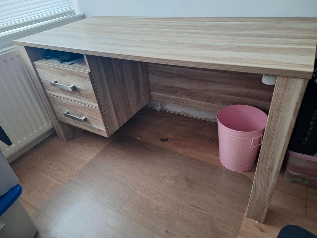 Keurig bureau. Maat van het blad: 149×67 cm. Hoogte: 76cm. Het bureau is al uit elkaar gehaald dus kan zo mee. Graag vandaag nog ophalen.