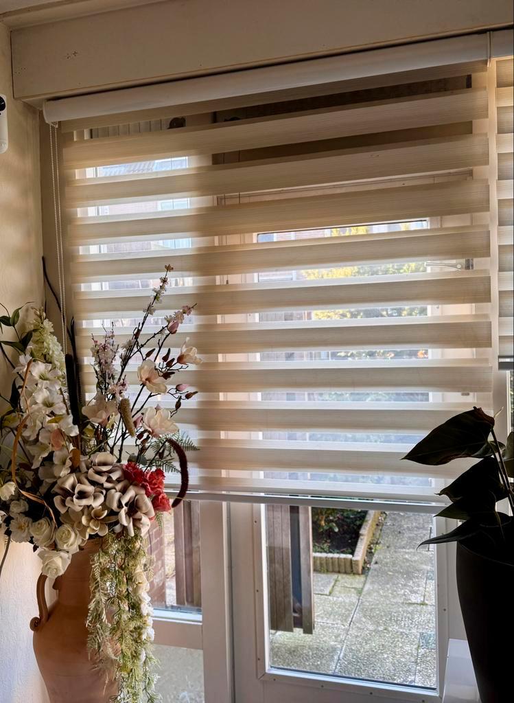 Net rolgordijn, 40 cm breed. Ideaal voor een klein raam. Kleur is neutraal en past in elk interieur. Eenvoudig te monteren. Afmetingen: 40 cm breed. Hoogte is variabel, afhankelijk van hoe ver je hem