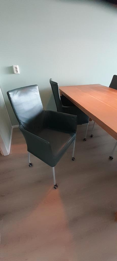 4 lederen eetkamerstoelen op wieltjes gratis