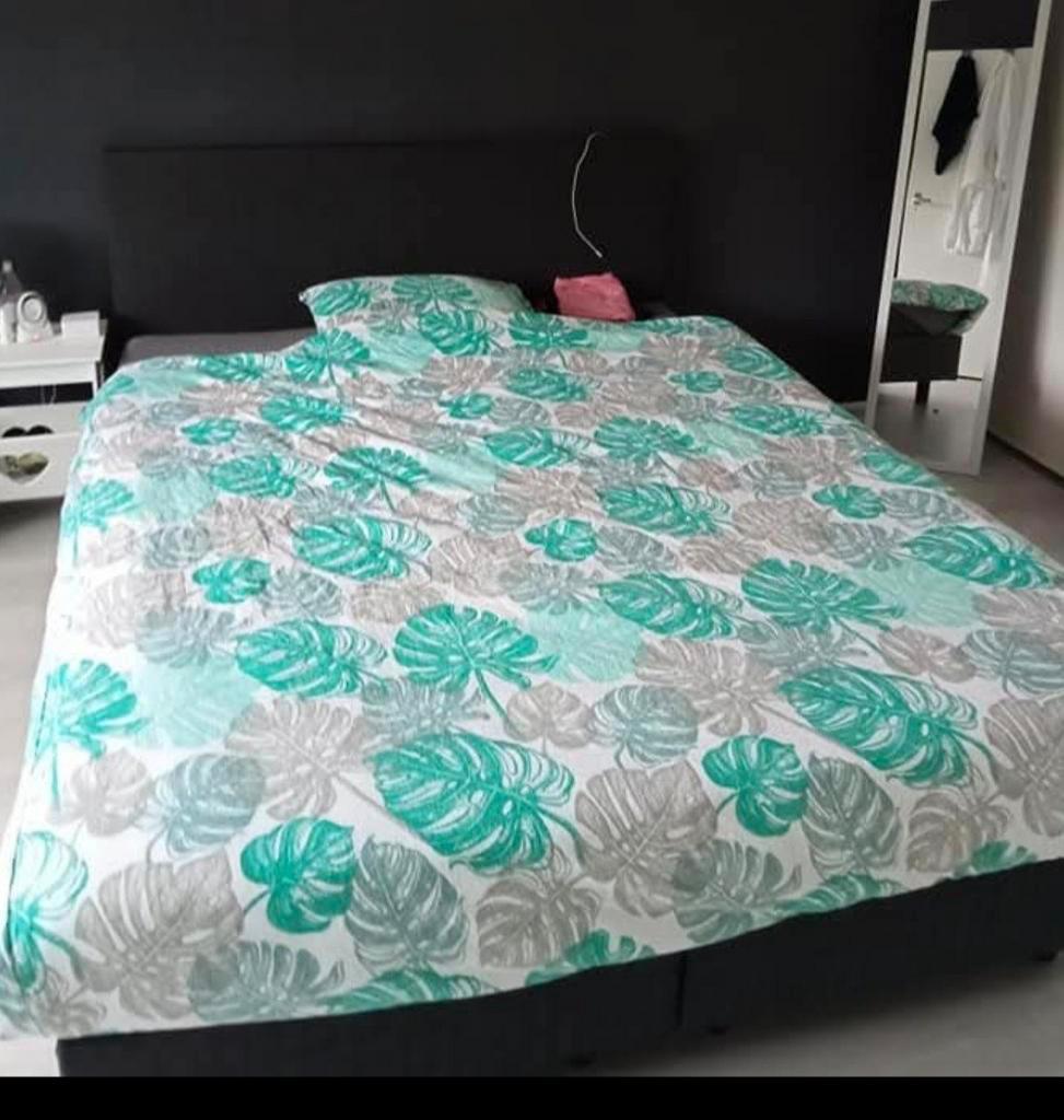 Tweepersoonsbed gaat om 2 boxen, een matras en een hoofdbord