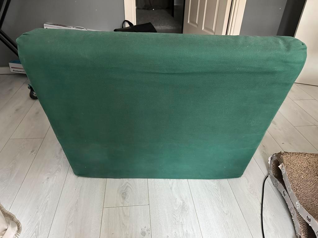Gratis ophalen. Groene fauteuil. Zit lekker, moet weg vanwege verhuizing naar een kleinere plek.